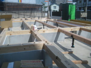 断熱は外張り断熱仕様で外壁・屋根ともにアキレスのQ1ボードを採用。