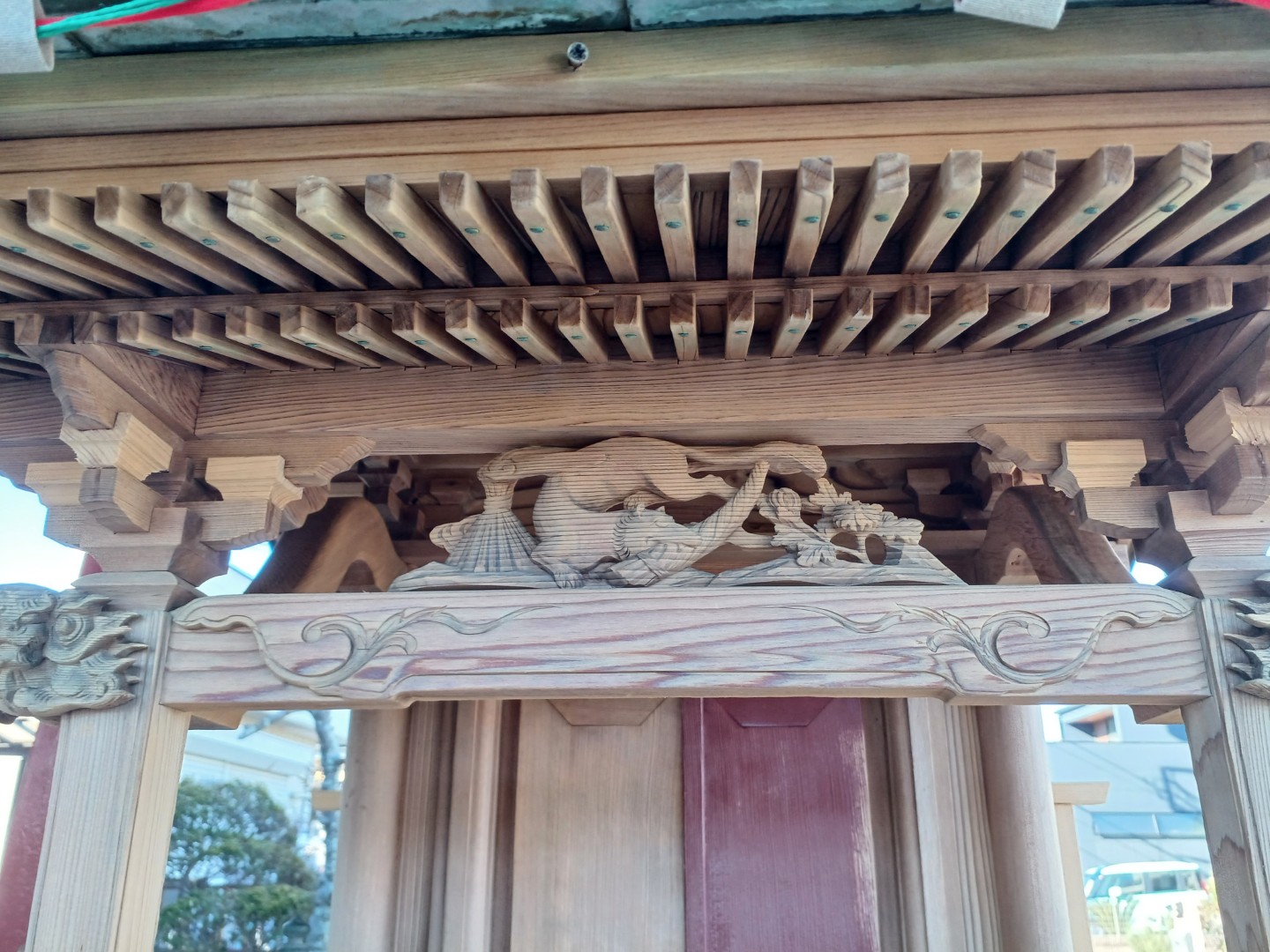 工事種別は社殿修繕と屋根修繕で、工期は約2週間。御神体や神事に関する取り扱いは地元の神職の方と調整し、御魂入れの日程を確定したうえで作業を進めました。社殿の雰囲気は大切にしながら、見えない部分で補強や耐候処理を行っています。
