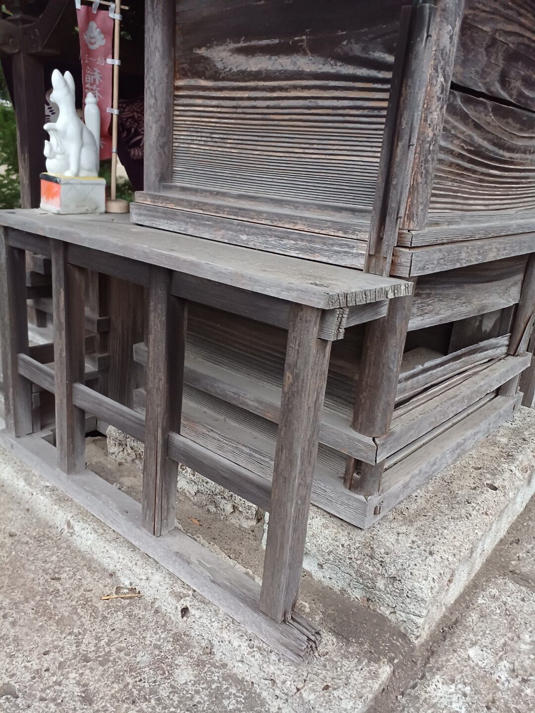 ご依頼は「社殿と屋根の老朽化が気になるので、綺麗にしてあげたい」というものでした。既存の社殿は木部の劣化や継手の緩み、屋根の雨仕舞の弱さが見受けられ、特に基部や縁部分の痛みが進んでいました。